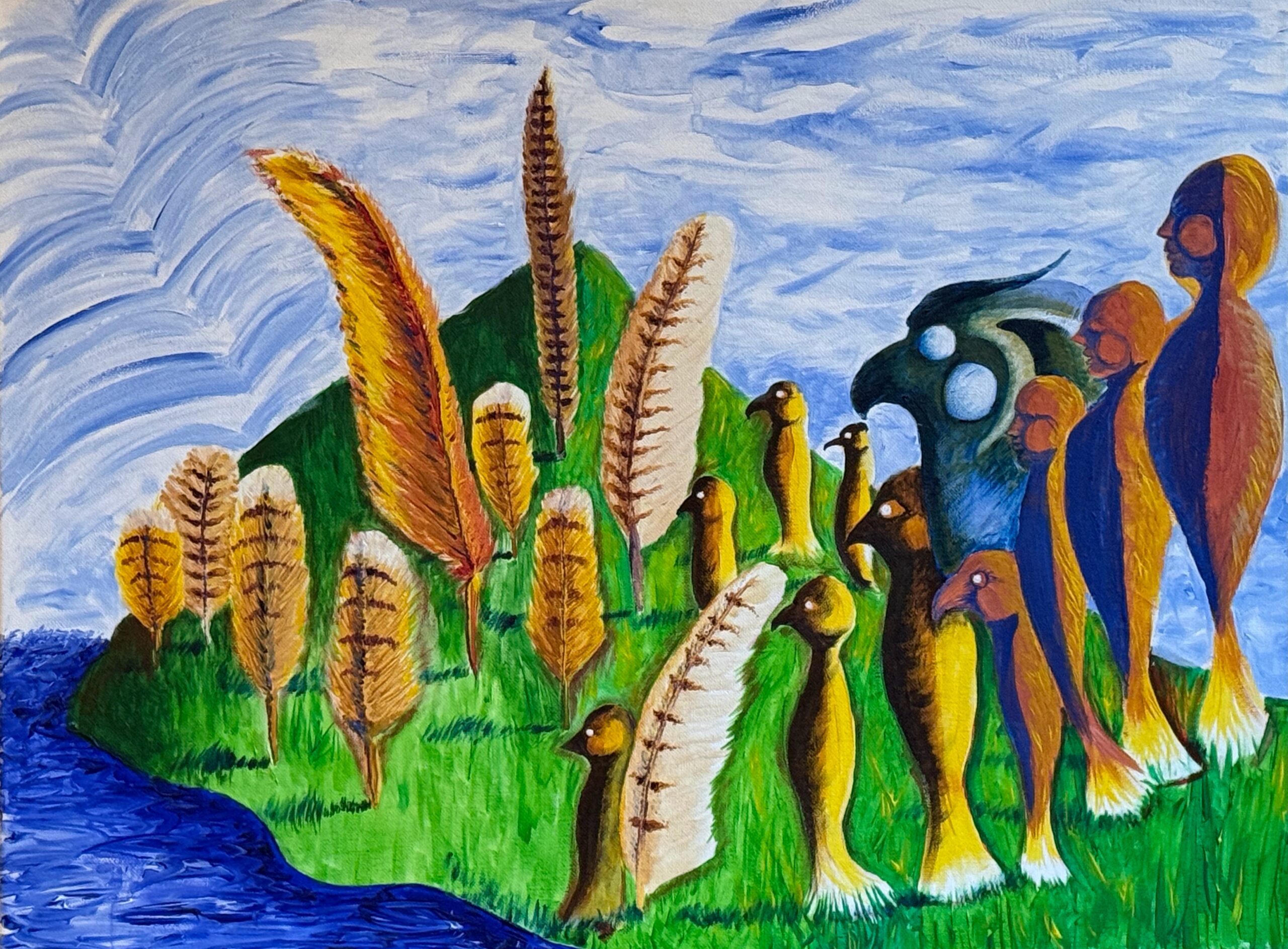 Here is a video of a painting in development, “The Having of Birds in the Head” from our painting culture idioms (this is a Spanish idiom, much like Bats in the Belfry.